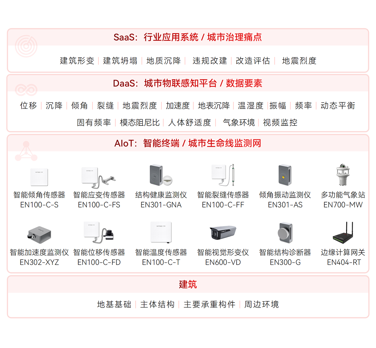 實(shí)時監(jiān)控建筑結(jié)構(gòu)健康狀態(tài),通過位移、沉降、傾斜、溫濕度、裂縫和動態(tài)平衡、自振頻率的數(shù)據(jù)收集分析,對潛在災(zāi)害進(jìn)行提前預(yù)警,對突發(fā)事件應(yīng)急報警,為結(jié)構(gòu)坍塌監(jiān)測預(yù)警分析和滑坡監(jiān)測預(yù)警分析提供數(shù)據(jù)支撐,實(shí)現(xiàn)對建筑健康狀態(tài)的實(shí)時評估。